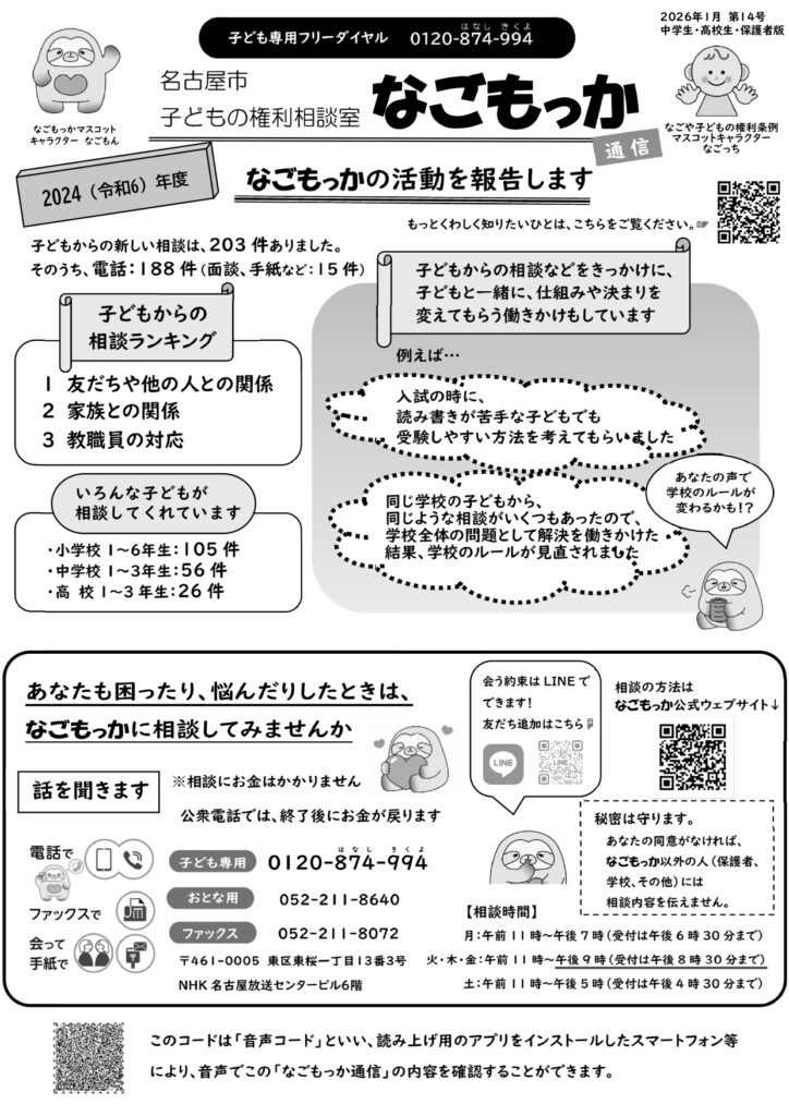 2024(令和6)年12月に新しいカードを作りました。このデザインは、てつなぎなごもんずのメンバーに「こんなカードなら相談しやすい」と思うデザイン・相談例を投票してもらったものです。 「『学校へ行きたくないなぁ』はよくある悩み」など、たくさんのメンバーが考えてくれました。
